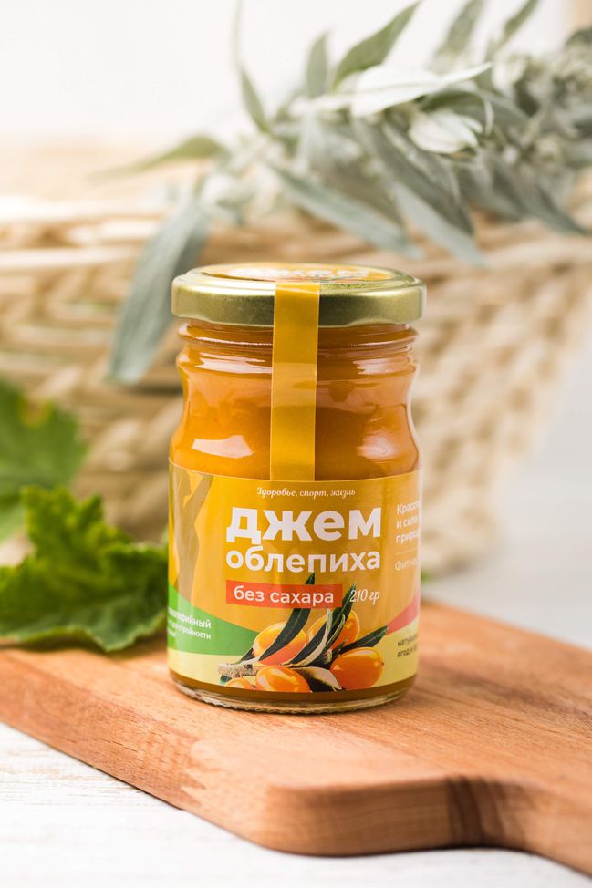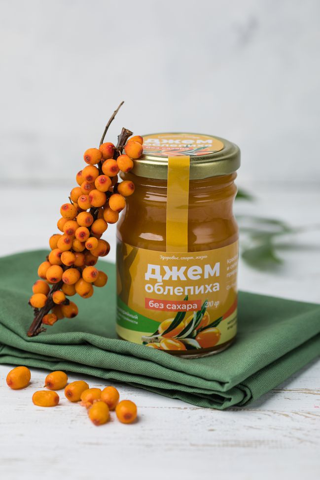 Джем без сахара "Облепиха" в банке.