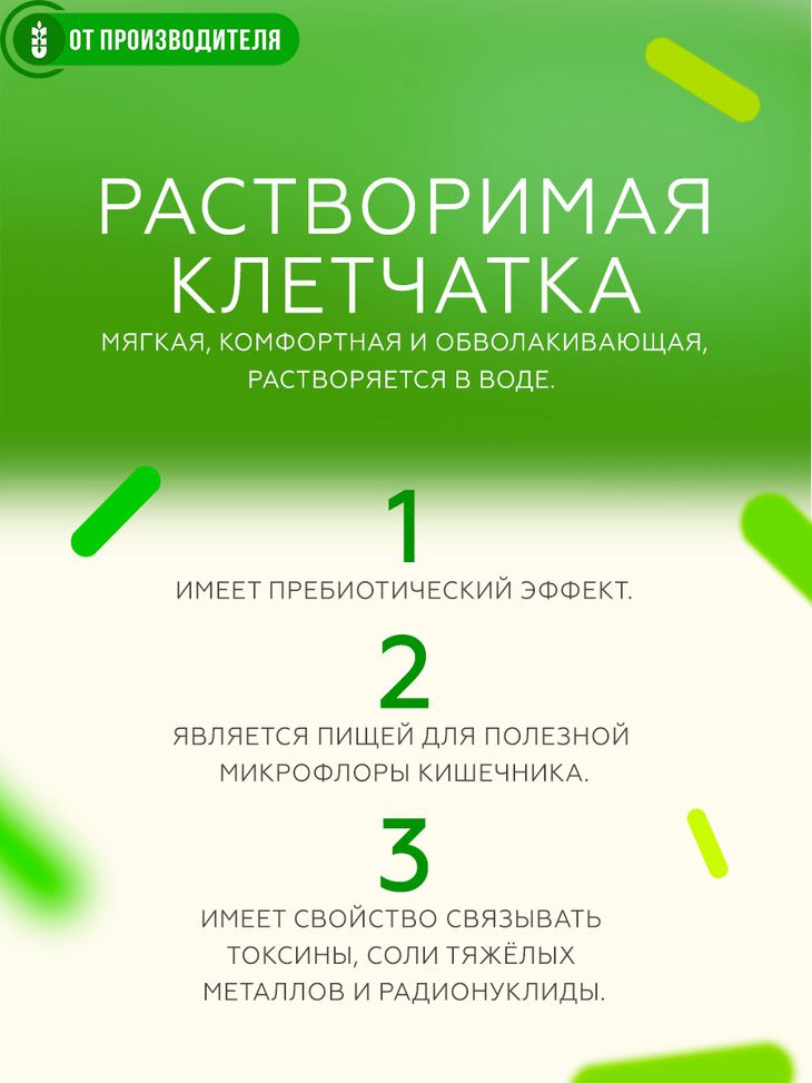 Оздоровительный кисель из растворимой клетчатки, которая улучшает образование и усвоение биологически активных веществ в кишечнике.