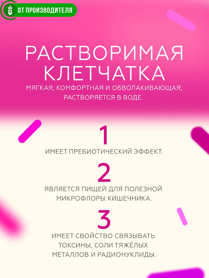 Оздоровительный кисель из растворимой клетчатки, которая улучшает образование и усвоение биологически активных веществ в кишечнике.