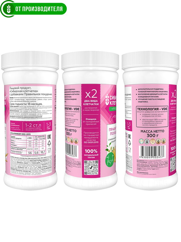 Впервые Сибирская клетчатка обогащена пребиотиками- растворимой клетчаткой необходимой для жизнедеятельности полезной микрофлоры кишечника.