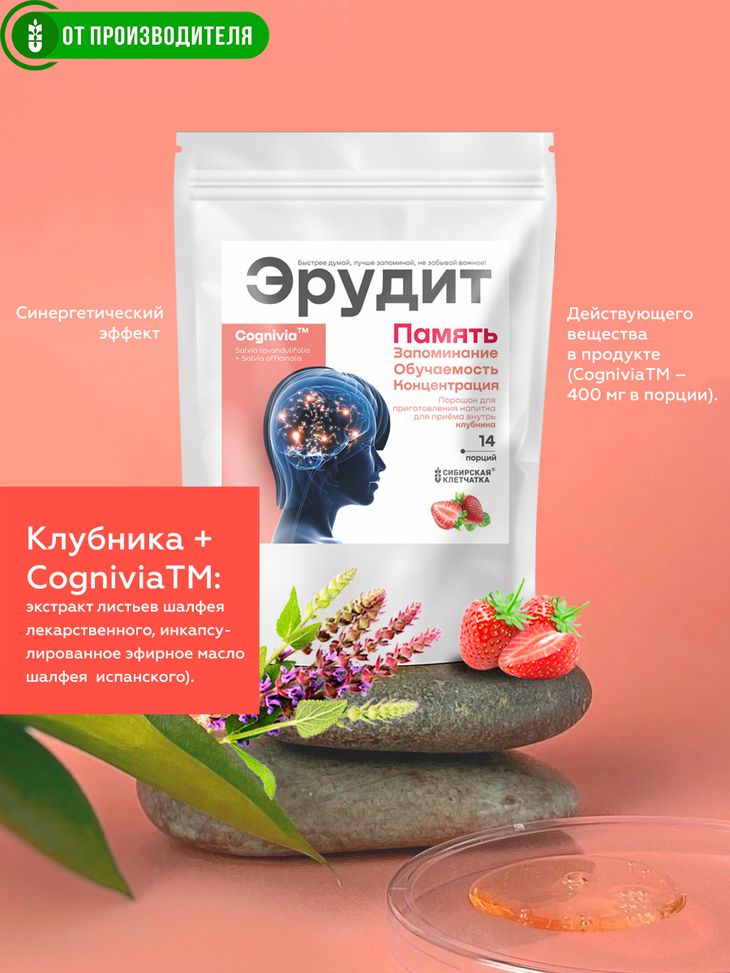 Напиток отличает уникальная форма и сочетание активных ингредиентов. Экстракт листьев Salvia officinalis и масло Salvia lavandulifolia находится в микрокапсулах - это сохраняет его биоактивные свойства, защищает от окисления воздухом.