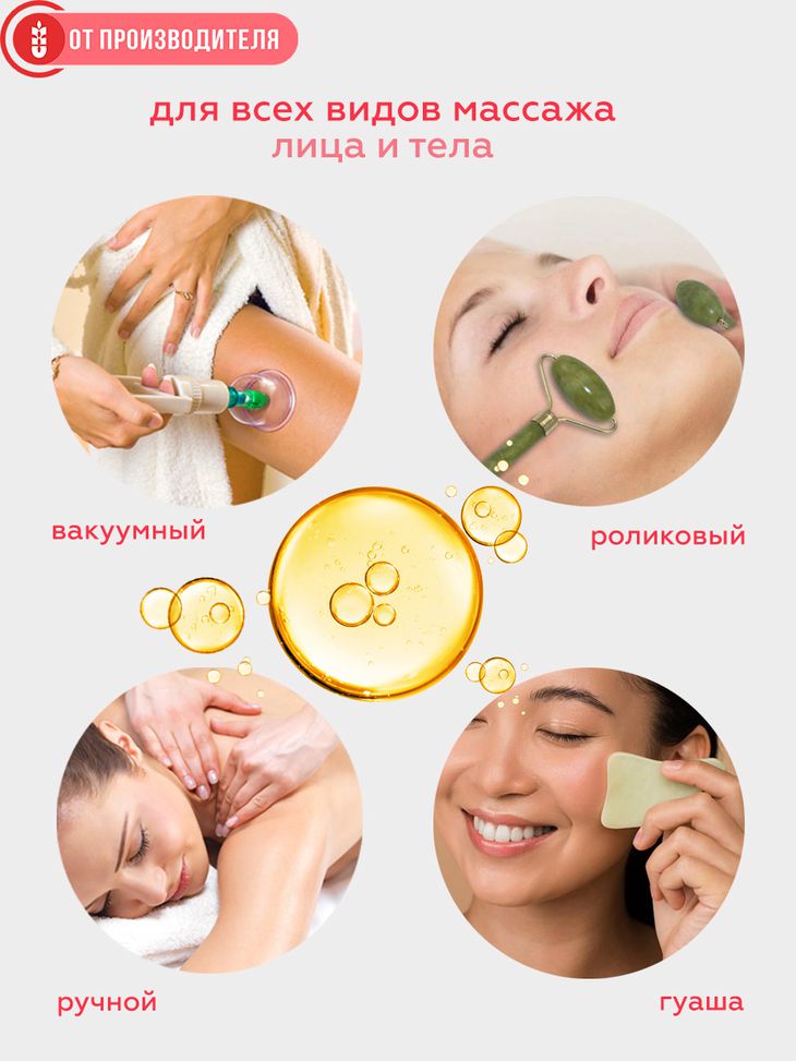 Масло для разных видов массажа: классический, оздоровительный, баночный, спортивный, гуаша, для лица.