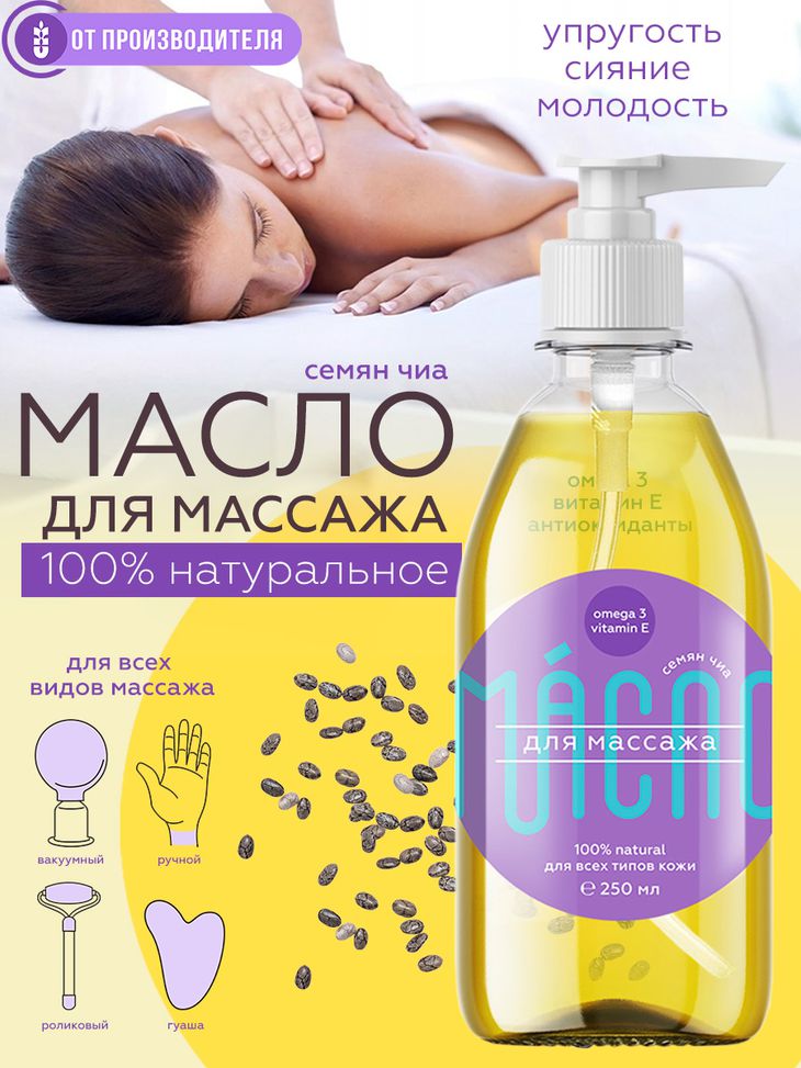 Масло для разных видов массажа: классический, оздоровительный, баночный, спортивный, гуаша, для лица.