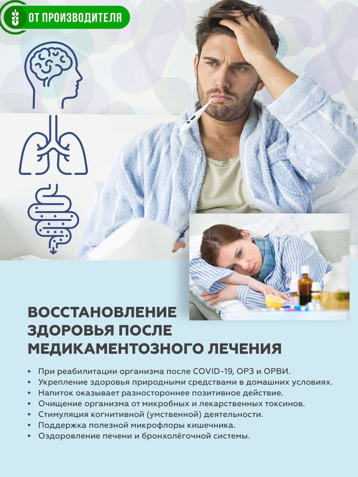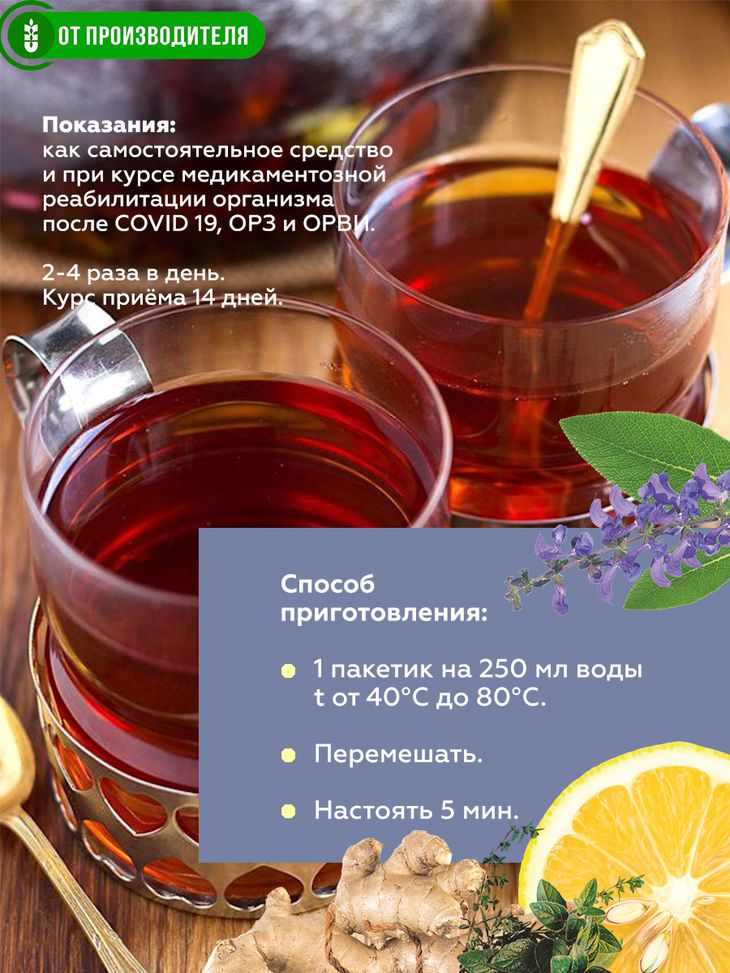 Показания: как самостоятельное средство и при курсе медикаментозной реабилитации организма после COVID 19, ОРЗ и ОРВИ.