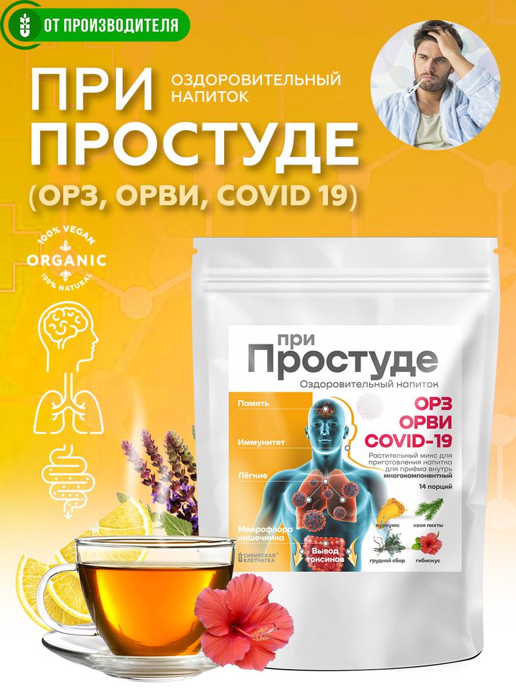 Растительный порошок для заваривания. При простудных заболеваниях (острых респираторных инфекциях верхних дыхательных путей и пневмонии). Оздоровительный напиток для облегчения основных симптомов болезни природными средствами в домашних условиях.