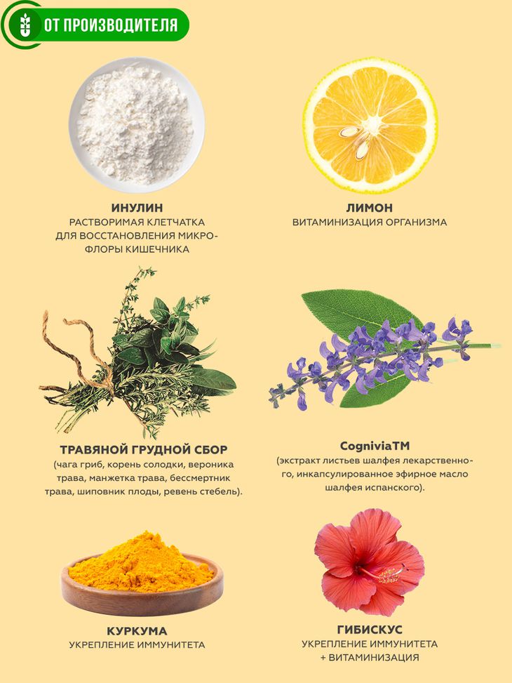 Оздоровительные свойства напитка усилены в 2-3 раза с помощью технологий, активирующих биодоступность полезных веществ, содержащихся в растительном сырье.