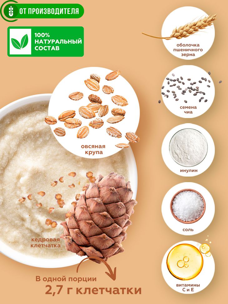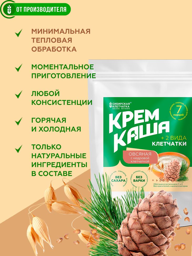 Овсяная крем-каша быстрого приготовления, обогащенная кедровой клетчаткой.