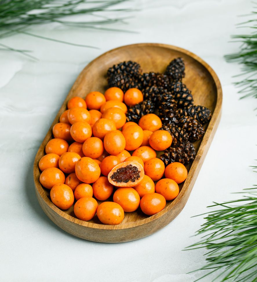 Молодая молочная сосновая шишка, собранная в тайге Томской области, бережно приготовленная в сиропе и подвяленная до нежнейших цукатов, покрытая слоем натурального белого шоколада с добавлением натуральных сублимированных и сушеных сибирских ягод. В линейке драже представлена сосновая шишка с ароматными ягодами клюквы и облепихи, и их ассорти