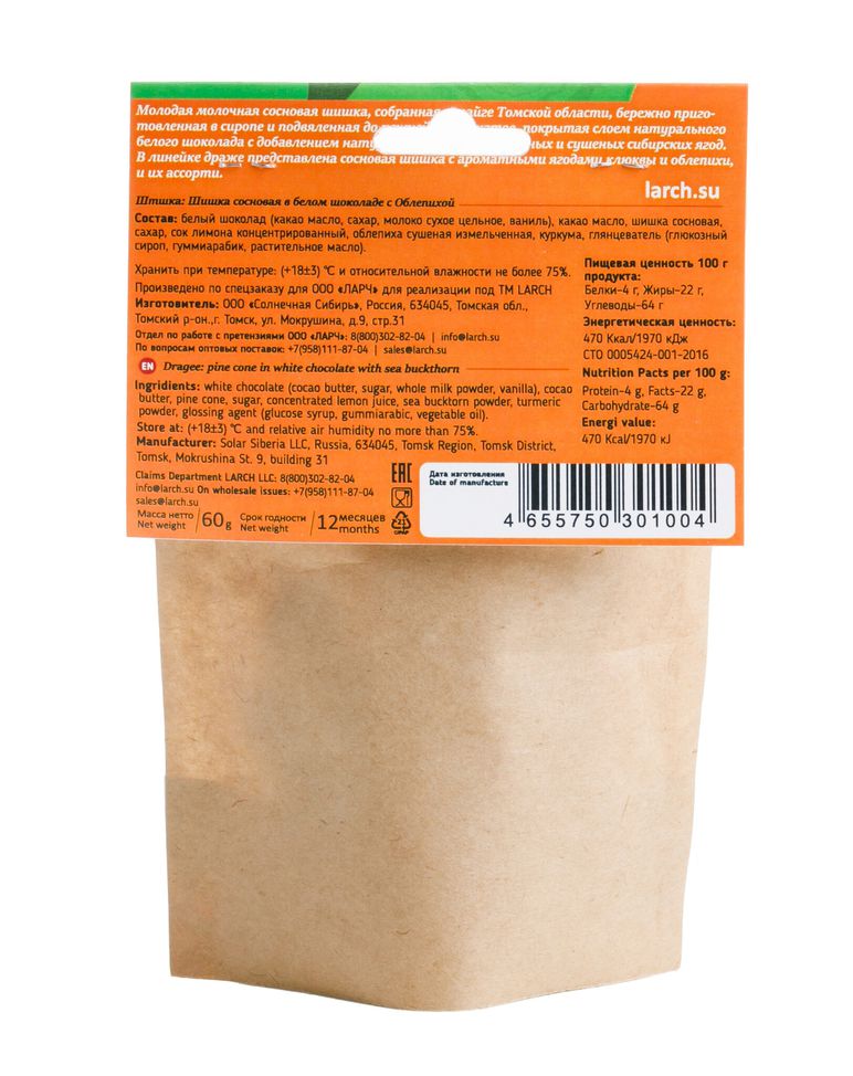 Шишка сосновая в белом шоколаде с Облепихой в пакете.
