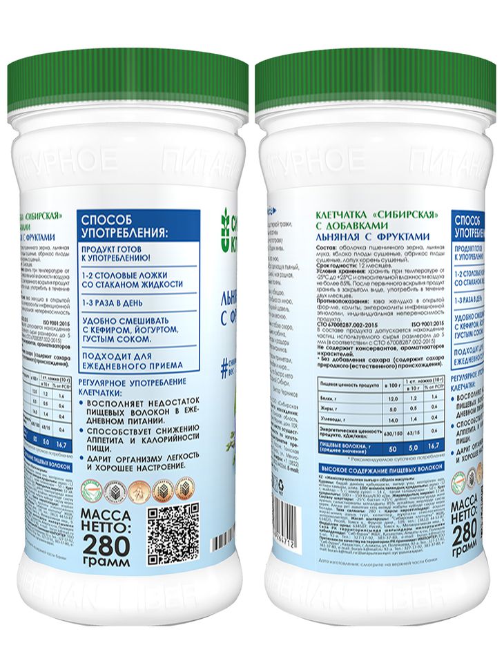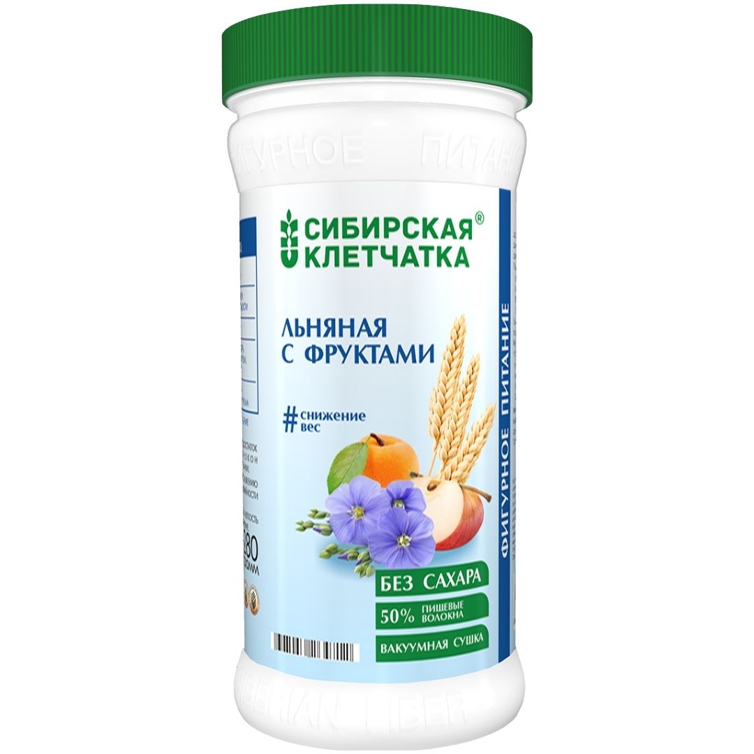 Полезные свойства семян льна известны давно. Семена льна применяли при лишнем весе, сахарном диабете, для профилактики онкологических заболеваний. Сибирская клетчатка «Льняная с фруктами» содержит лен и полезные фрукты —абрикос и яблоко.