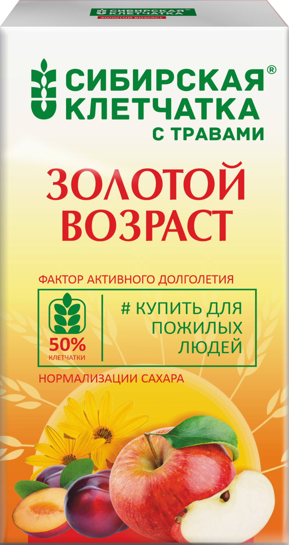 Специальная клетчатка для людей, умудренных жизненным опытом. Имеет богатейший состав — набор необходимых витаминов и минералов для мужчин и женщин прекрасного золотого возраста. Восполняет недостаток овощей и фруктов в рационе питания человека, рекомендуется как эффективное профилактическое и оздоровительное средство.