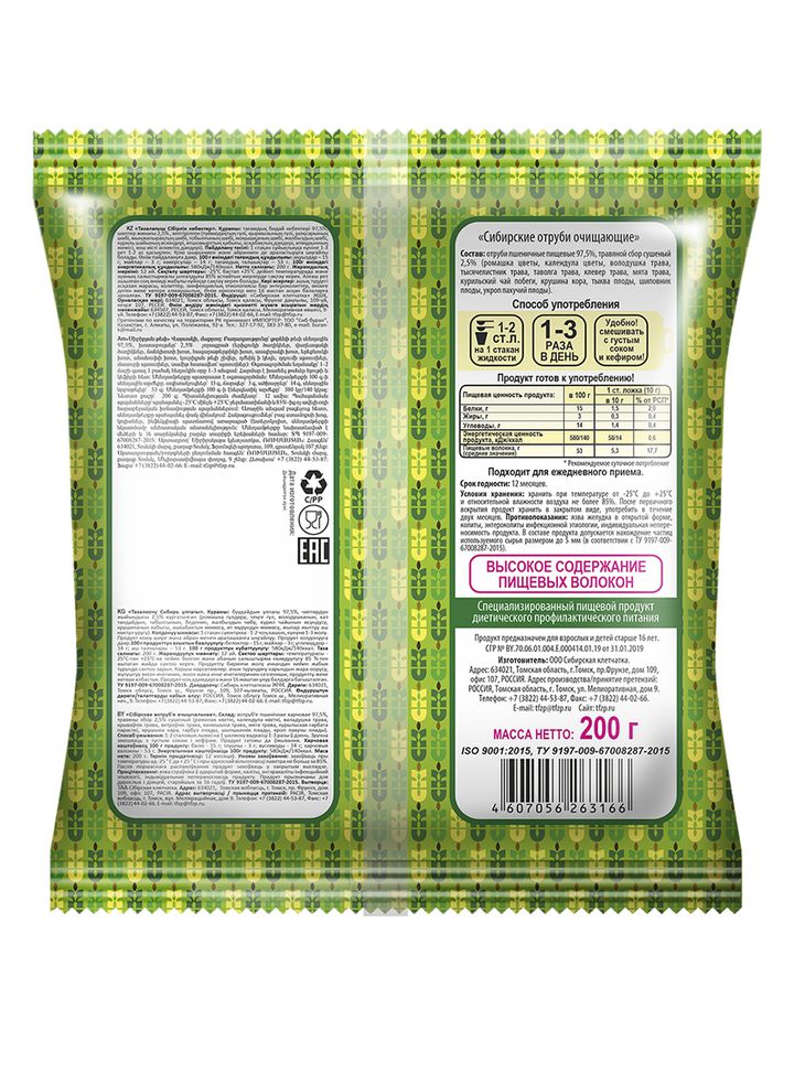 Отруби очищающие являются продуктом диетического-профилактического питания. Это подтверждается свидетельством о Государственной регистрации № Сибирские отруби имеют оптимальный размер частиц для комфортного приёма. Проходят двойной просев от посторонних примесей и 98% очистку от муки.