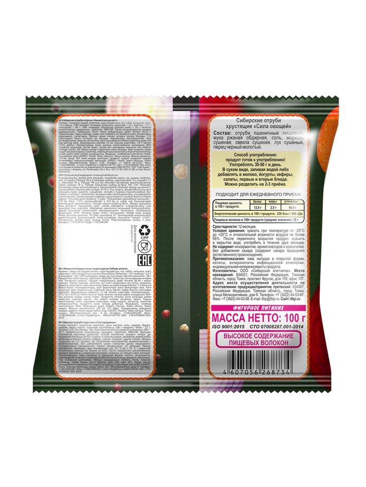 Вкусный хрустящий продукт для «природного» улучшения работы кишечника, снижения калорийности пищи, нормализации веса. Отлично подходит для полезной замены хлебобулочных изделий в рационе питания.