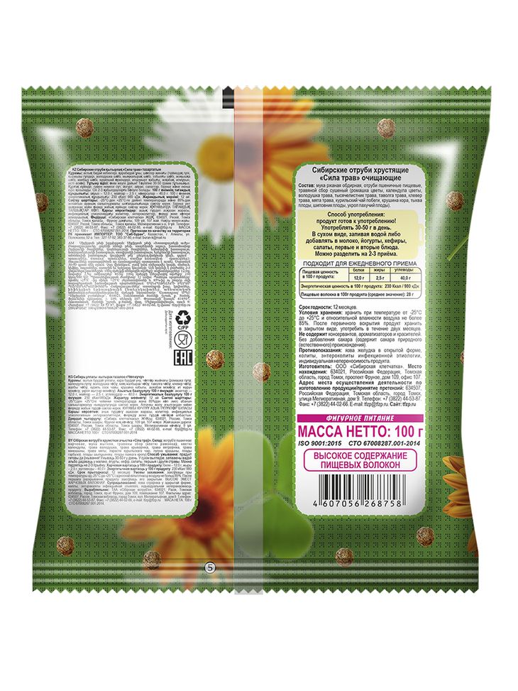 Отруби обогащены сбором 12 целебных трав, обладающих очищающим действием.