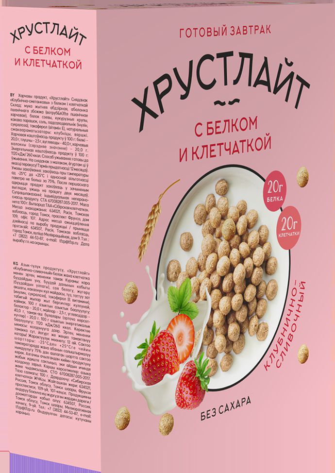 Быстрый, готовый, вкусный и полезный, хрустящий сухой ЗАВТРАК с белком, клетчаткой. Со вкусом Клубнично-сливочный