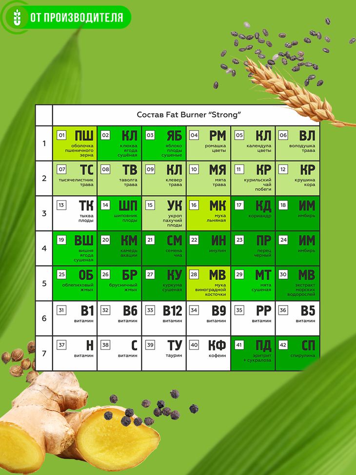 FAT BURNER «STRONG» способствует очищению и детоксу организма, снижению чувства голода, поддержке стройности фигуры.